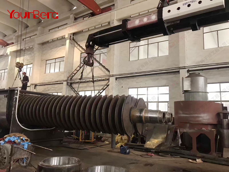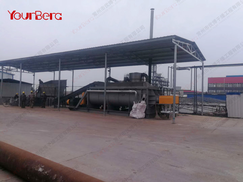 案例描述:污泥烘干機(jī)可以一次性將90%含水量的物料烘干至成品。針對(duì)污泥烘干過(guò)程中易結(jié)團(tuán)結(jié)塊的特性,改變了一般單通道干燥機(jī)的料板結(jié)構(gòu)形式,采用了組合式自清理裝置,極大地?cái)U(kuò)展了單通道干燥機(jī)應(yīng)用范圍,不僅可以干燥各類污泥,還可以干燥各種高粘度物料。