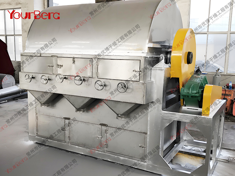 3、干燥時(shí)間短。物料的干燥周期一般只有10-300秒,在適合于熱敏性物料。若將滾筒干燥機(jī)設(shè)置在真空器中,則可在減壓條件下運(yùn)行。