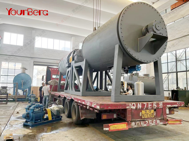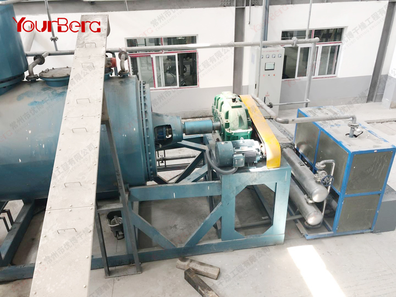 本機是一種新穎臥式間歇式真空干燥設(shè)備,濕物料經(jīng)傳導(dǎo)蒸發(fā),帶有刮板攪拌器不斷清除熱面上的物料,并在容器內(nèi)推移形成循環(huán)流,水份蒸發(fā)后由真空泵抽出。