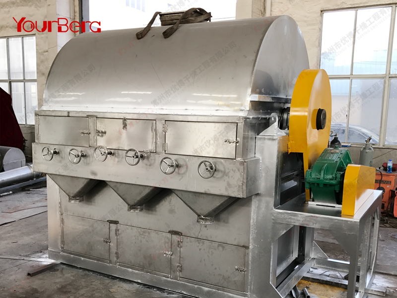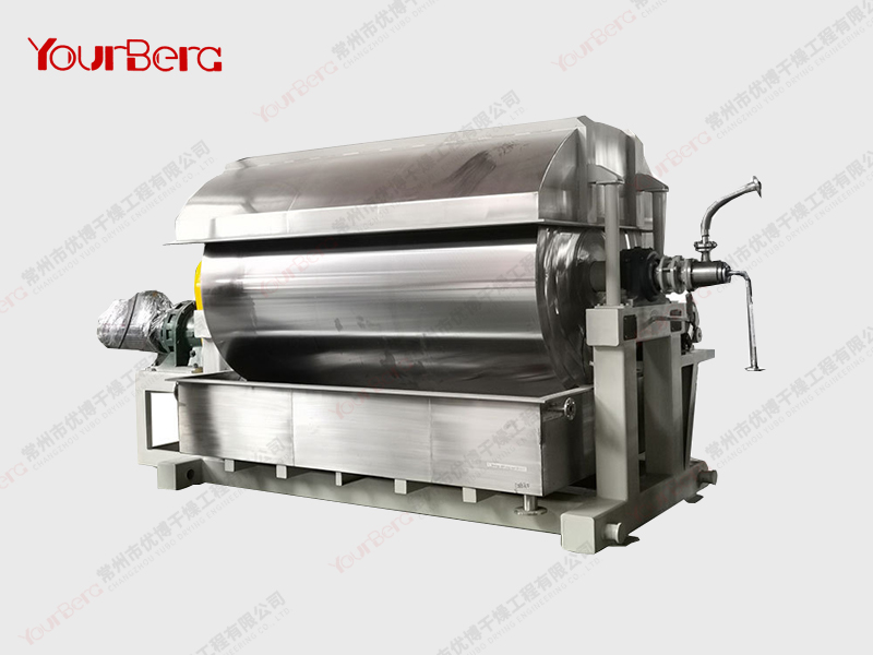 3、干燥時間短。物料的干燥周期一般只有10-300秒,在適合于熱敏性物料。若將滾筒干燥機設(shè)置在真空器中,則可在減壓條件下運行。