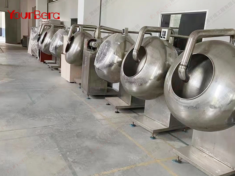 本機(jī)用以制藥、食品行業(yè)為片劑、丸劑包裹糖衣。也可用作滾抄豆、果品類成熟之用。其特點(diǎn)是糖衣球的傾斜角度為水平向上30度,球下可以放置電爐、煤氣等直接加熱設(shè)備。隨機(jī)附單獨(dú)的電熱式鼓風(fēng)機(jī),出風(fēng)管伸入球內(nèi)可作加熱或吹冷,熱量可以分二檔調(diào)節(jié)。可根據(jù)客戶需求,增加變頻調(diào)速、外加熱、溫度控制、噴液系統(tǒng)等用以包制薄膜藥片。BYF系列薄膜包衣機(jī)是根據(jù)客戶需要在BY系列荸薺式糖衣機(jī)基礎(chǔ)上改進(jìn)而來,分無極轉(zhuǎn)速和固定轉(zhuǎn)速倆種型號(hào),(每分鐘5-50轉(zhuǎn)可調(diào))。配有噴槍、支架、儲(chǔ)液罐和帶變頻器的電器箱。